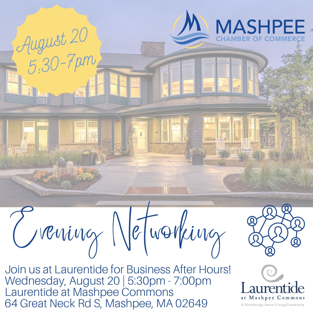 Join us on Wednesday, August 20 for some Business After Hours networking fun at Laurentide at Mashpee Commons. Open to all!