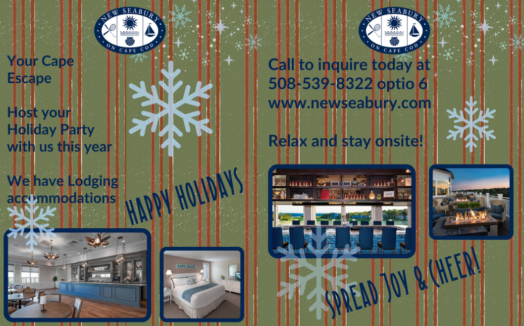 Make your holiday celebration a Cape escape 🎄✨ Back to News Make your holiday celebration a Cape escape 🎄✨ By The Club at New Seabury 11/3/2025 Make your holiday celebration a Cape escape Host your holiday party with us and enjoy beautiful venues, festive coastal charm, and onsite lodging for you and your guests.Call 508-539-8322 option 6 to inquire today! Images Images × Share × Email Facebook LinkedIn X Pinterest Powered By GrowthZone